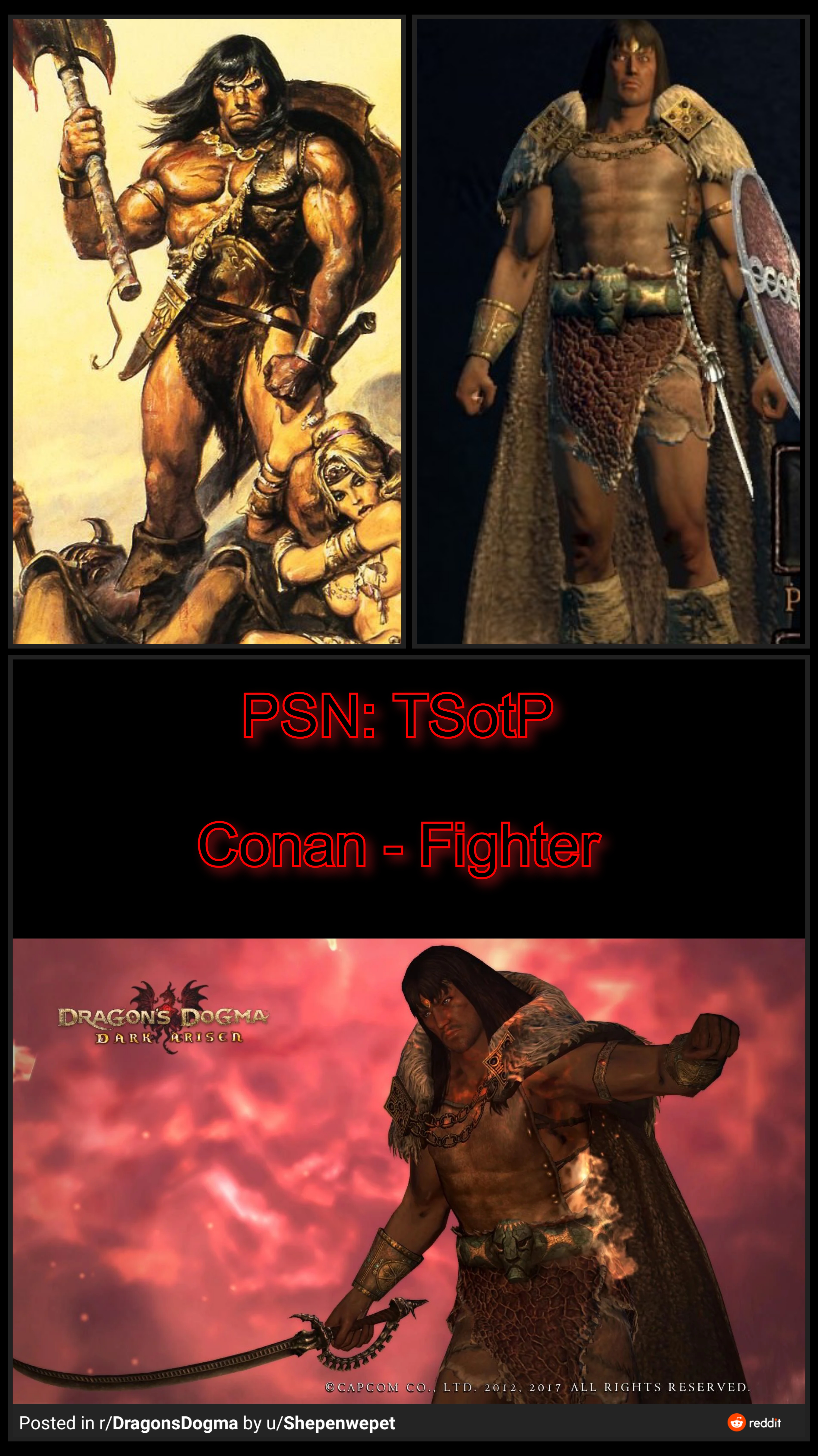 Based on the Book and Comic, coincidentally like his design in 'Conan Exiles'.